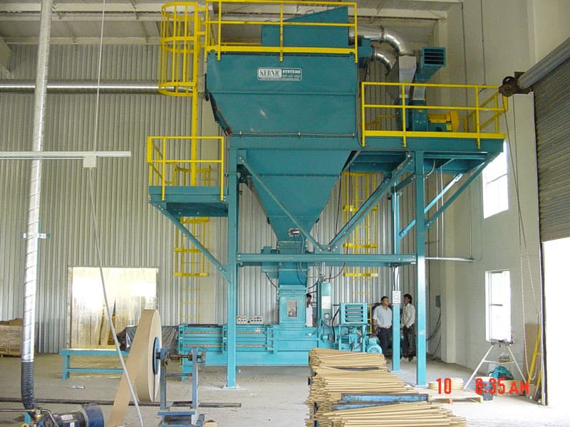 The Model 14 is capable of baling from 3,000 to 4,000 pounds of material per hour. It is designed for use in lumber mills, saw mills and millwork plants, but exerts enough pressure to form extremely dense bales of paper, textile materials, paper dust and a wide variety of other materials.